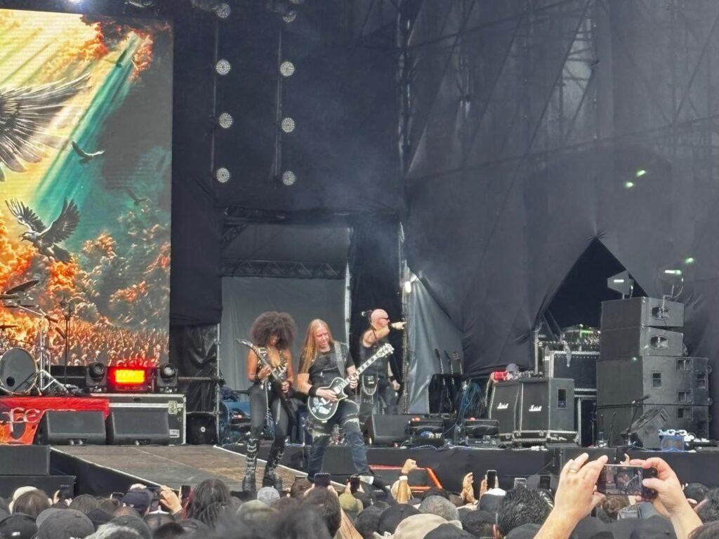 Quando o Primal Fear começou, já do outro lado do evento, os olhares de admiração não ficaram apenas no timbre forever young de Ralf Scheepers. A nova guitarrista Thalia Bellazecca dominou o set do grupo alemão, dividindo as execuções complexas das canções de power com sorrisos enormes e um notório prazer de estar performando entre os dinossauros. Magnetismo imediato que fez o sol não parecer tão efervescente quanto estava e ajudou o público a chegar vivo até a apresentação energética do Nevermore.