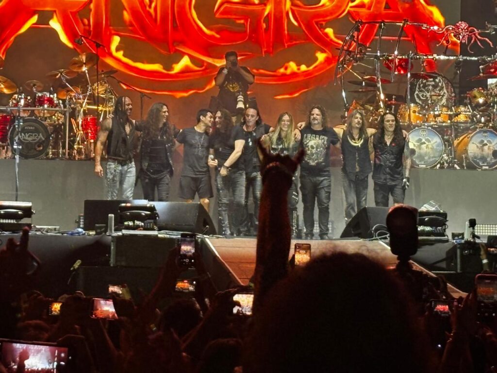 Ainda deu tempo para Alírio regressar para tocar “Wuthering Heights” e “Carolina IV” antes do ato mais esperado do festival. Assistir Aquiles Priester aparecer atrás de sua icônica bateria ao mesmo tempo que Kiko, Edu, Felipe e Rafael é algo inesquecível. A formação Nova Era foi, para muitos, a inclusão do Angra em suas vidas. Uma parte delicada de um grupo que havia perdido baterista, baixista e vocalista e precisou renascer. Ninguém acreditava que esse renascimento seria possível da mesma forma que ninguém acreditava que o momento de celebrar esse renascimento seria possível.